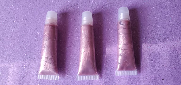 Our "Purple Mist" glosses moisturizes your lips while giving you a very glossy POP with a hint of purple color. Best of all our glosses won’t leave your lips feeling sticky. (NON-SCENTED)